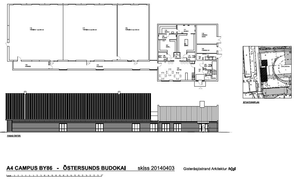 Träningsyta ett och två om vardera 205 kvm kan öppnas upp till en stor yta om 410 kvm! Den här hallen kommer i normalfallet ha mjuk matta på golvet. Träningsyta tre om 120 kvm är utrustad med ett hårt funktionsgolv och uppmålade pister samt färdigdragen el för fäktning.