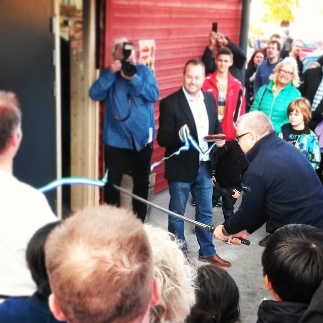I dag har vi haft invigning av Kamphuset. Det var en otrolig uppslutning med någonstans mellan 200 och 300 personer. Bandet "klipptes" av Tomas Fuchs, från A4 Campus, med en skarpslipat katana.