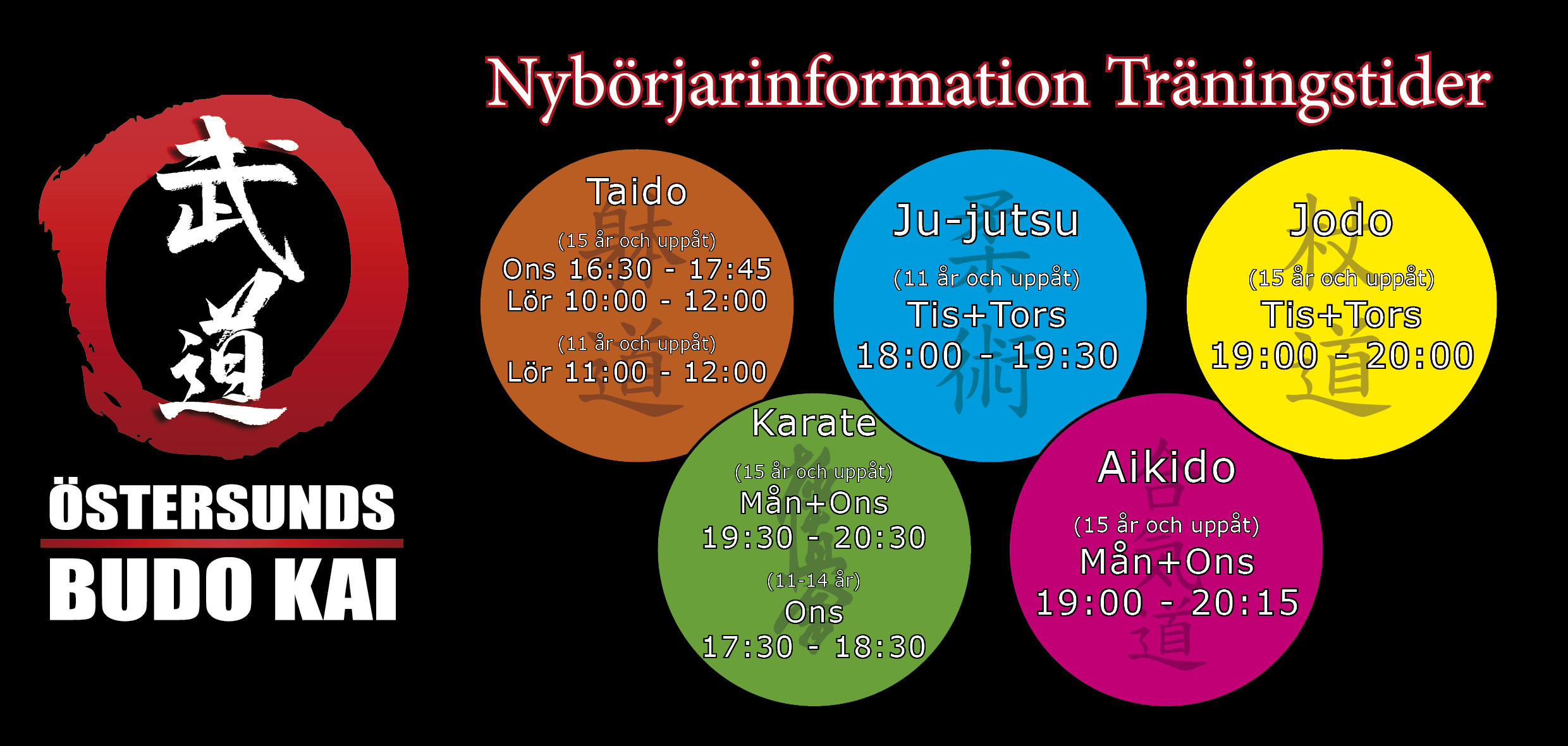 I Östersunds Budokai kan du träna Karate, Jujutsu, Aikido, Jodo/Iaido och Taido. Vi har även en sektion för barnträning som vi kallar Budokidz.