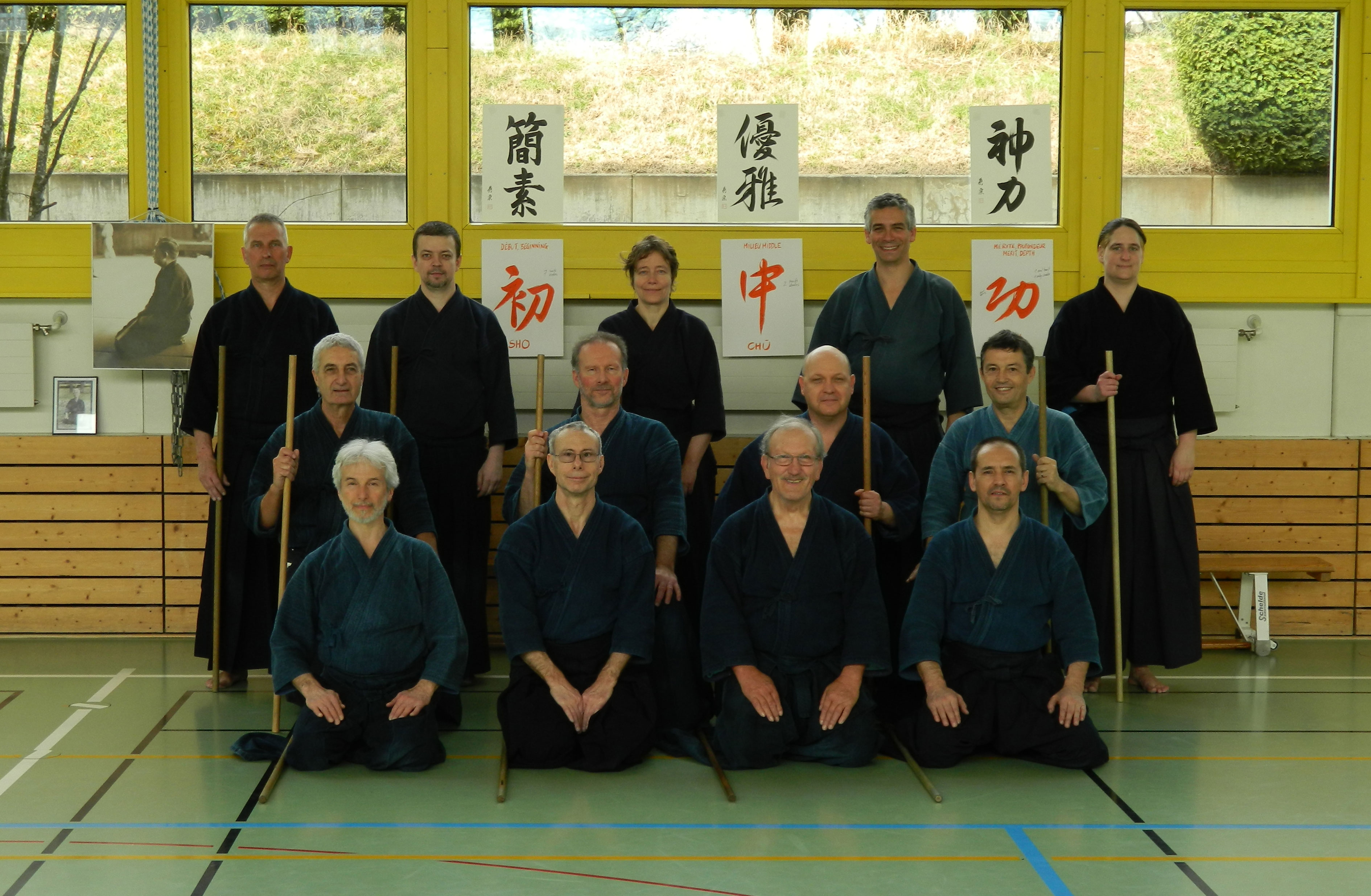 Bild från senaste instruktörslägret i Geneve (jodo), featuring bl a Gômokuroku Michael Söderkvist