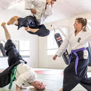 Träningsyta ett och två om vardera 205 kvm kan öppnas upp till en stor yta om 410 kvm! Den här hallen kommer i normalfallet ha mjuk matta på golvet. Träningsyta tre om 120 kvm är utrustad med ett hårt funktionsgolv och uppmålade pister samt färdigdragen el för fäktning.